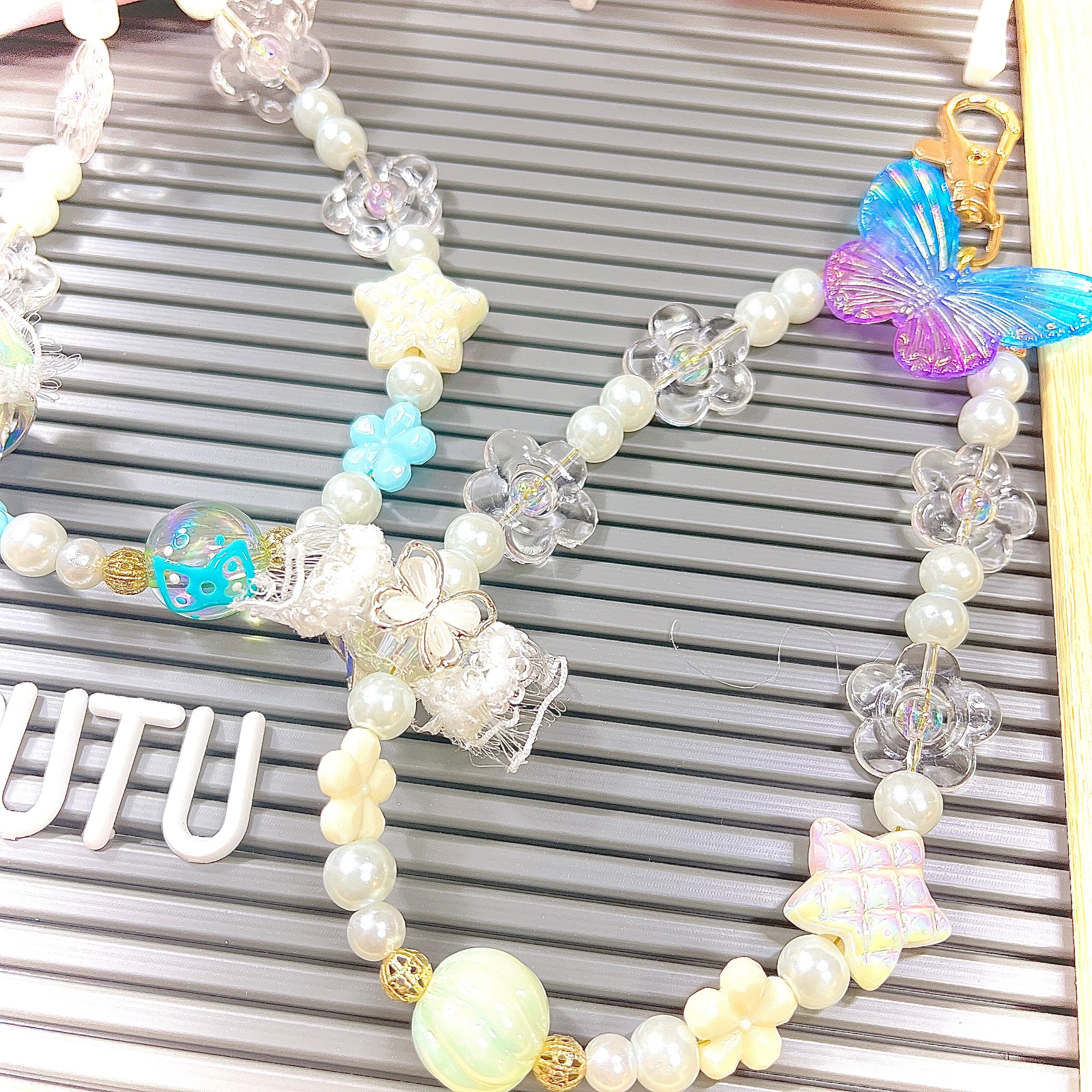 【特別台紙】蝶々のチャーム付きストラップ