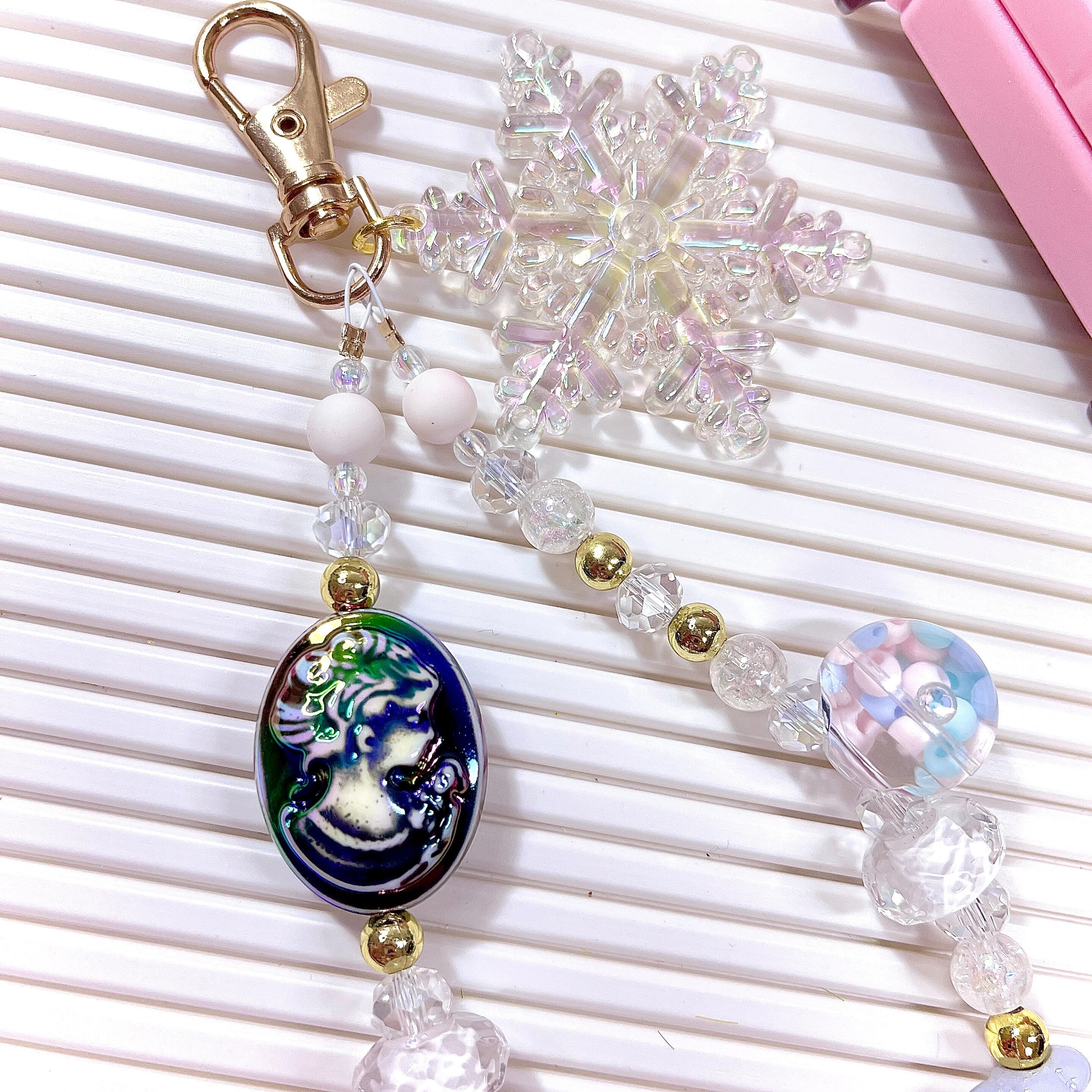 【特別台紙】雪の結晶チャーム付きストラップ