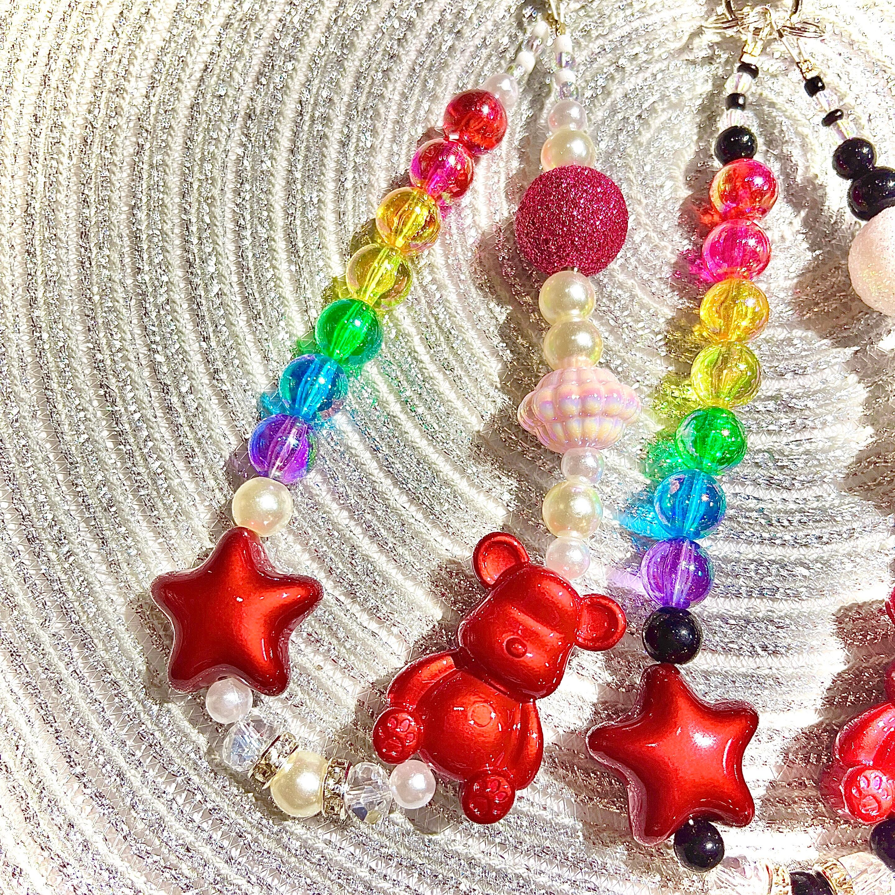【スマホストラップ】メタリックレッドベアー